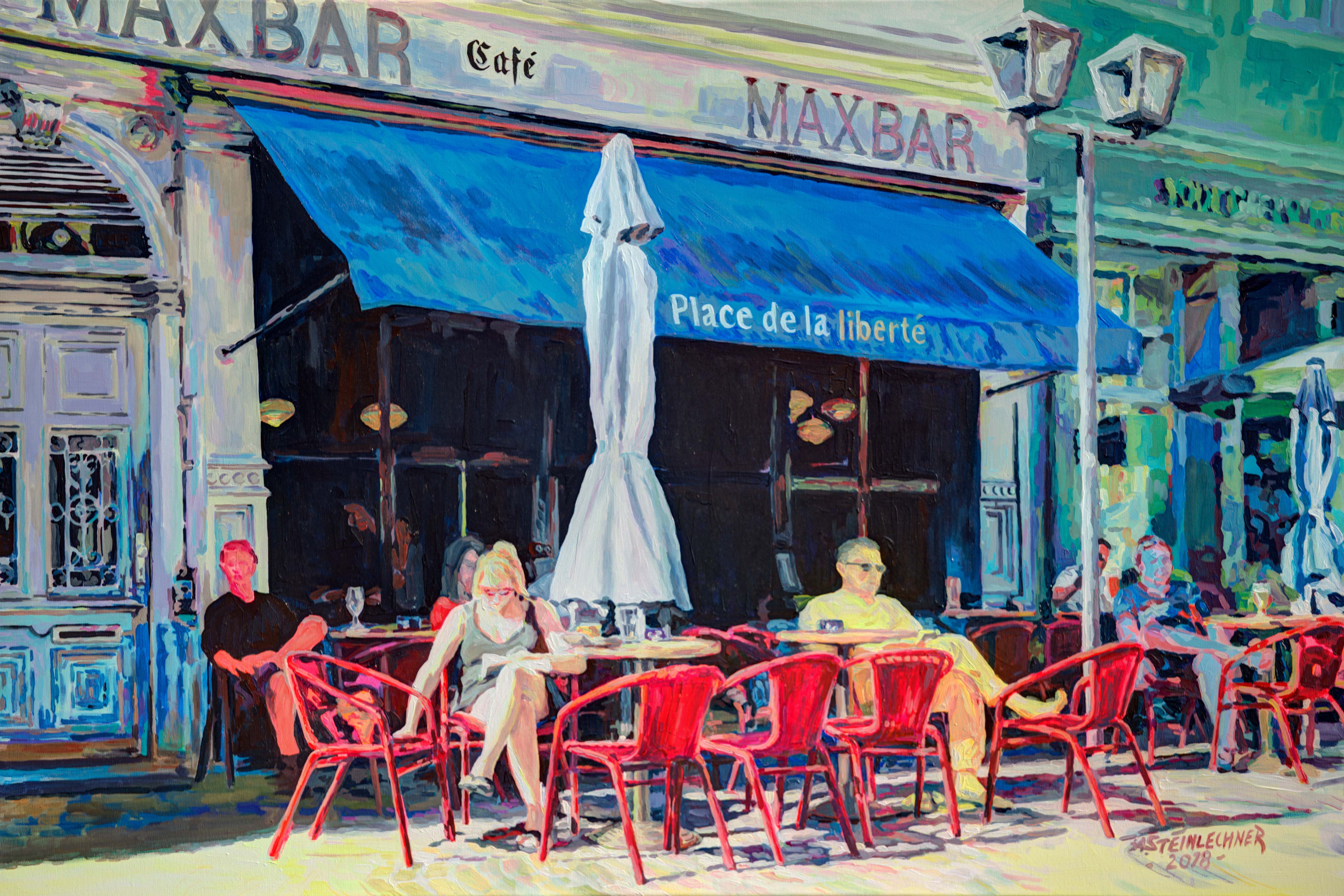 Mit ihrem frischen, popartigen Malstil schafft es die Künstlerin auch konservative Themen wie beispielsweise Stadtansichten, modern und unkonventionell darzustellen.